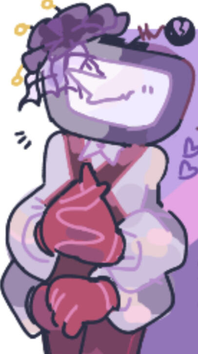 A version of Tenna that is ultimately completely lost it. She has all the traits adapted from AUs of her younger self and gets more as she develops as well.Despite it still being the Tenna that used to be loving and kind... She really has more in common with another Tenna's "WorstEnd" timeline in terms of demeanor and the fact her screen can only display either the red static, or a black screen with a smile.The reasoning for this is due to her emotional state completely going off the deep end when she lost her Spamton despite the fact he promised to stay with her. The fact that she couldn't keep them together despite everything she tried hurt her more than anything.In one of her violent breakdowns, she actually ended up killing her own version of Mippins, which made things even worse for her due to the fact it was a mistake originally.
